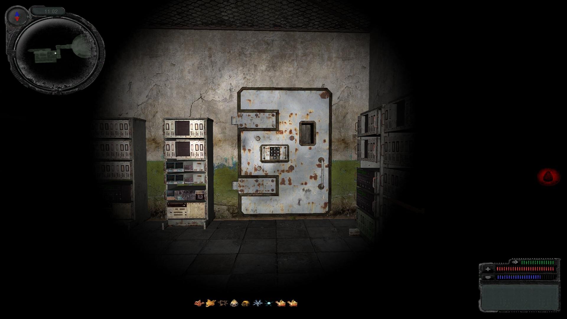 карась 2209 за закрытой дверью в шкафу. Чтобы получить код, нужно из Х-16, где главный пульт управления, перейти в Х-18. Переход у текстурной двери. Как перешли из 16 в 18, то лутаем жмура, с него получаем код от двери.