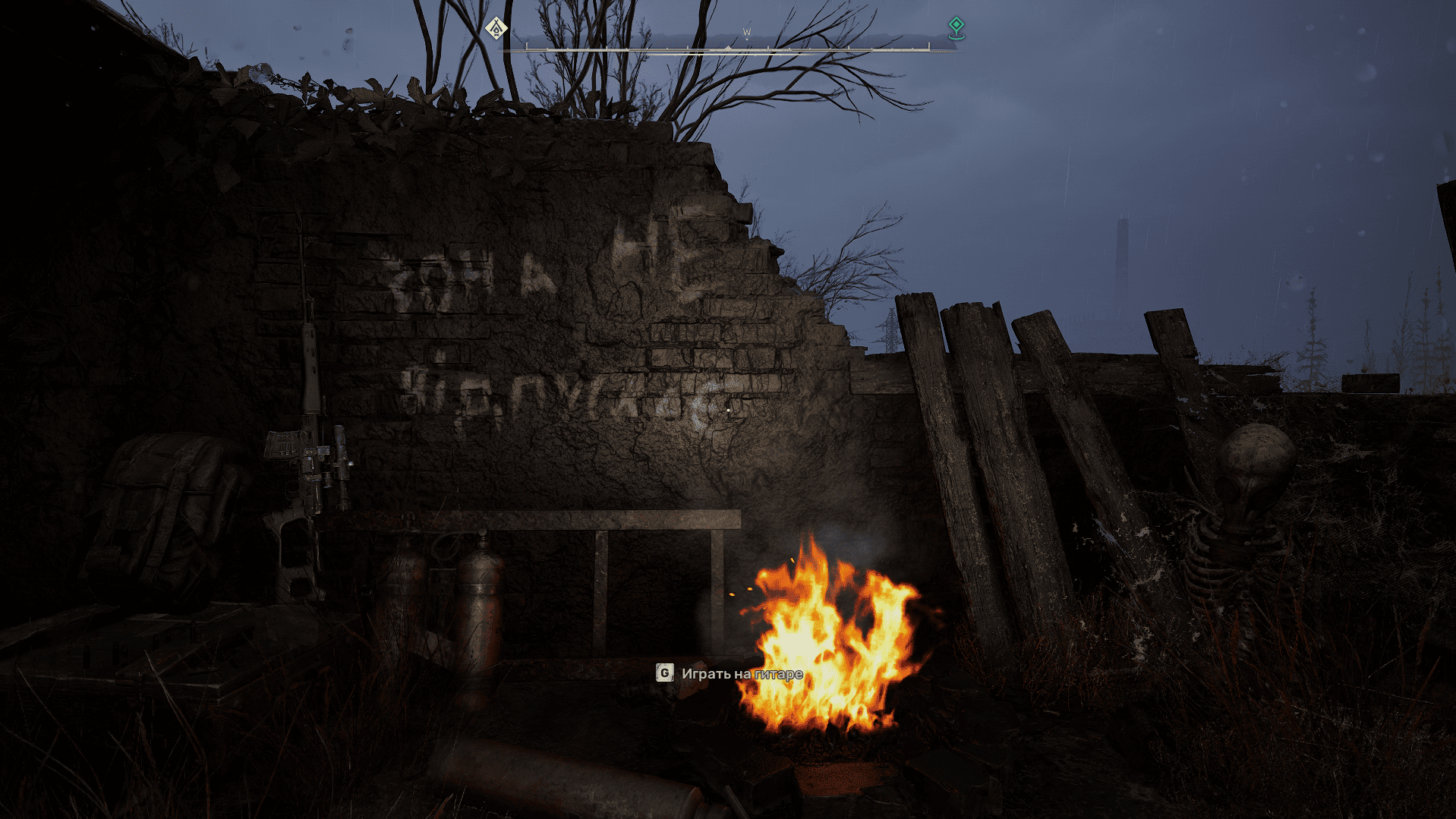 Как многие слышали, спустя пару дней после релиза S.T.A.L.K.E.R 2: Heart of Chornobyl, игроки смогли найти множество пасхалок и отсылок как на старые части игры, так и на другие литературные произведения и игры со всего мира. Одну такую отсылку нашёл пользователь _teitokuma, который стал первопроходцем, нашедшим отсылку на главное меню первой части игры S.T.A.L,K.E.R. Я же пишу этот пост, чтобы поделиться с вами тем, какие впечатления я лично получил от находки и где именно находиться данная отсылка, если кто-то захочет после найти её и лично увидеть в игре: 1. Мои впечатления. Впечатления от находки были просто завораживающие. Я был рад тому, что и я смог найти то место. После того, как я увидел тот пост об этой находке 27 ноября, я тоже хотел найти это место, однако информации о местонахождении данной достопримечательности ничего не было известно. Я пытался найти что-то похожее, но уже ближе к концу игры на уровне с градирнями, я решил прогуляться по территории, найти что-нибудь полезное, и тут сам натыкаюсь на то, что искал так давно. Это было великолепно. Я был вынужден сесть около костра, включить музыку из главного меню S.T.A.L.K.E.R: Тень Чернобыля, и заснял это на видео. Кому интересно, можете глянуть "тут". 2. Где находиться это место? Как я и упоминал ранее, это место находиться на локации "Градирни", неподалёку от "Крепости", где мы в концовке "Скифа" или "Стрелка" уничтожаем Монолит. Фото карты из КПК, где находиться место, прилагается. --->>>Мод на изменённую главную музыку в S.T.A.L.K.E.R 2: Heart of Chornobyl<<<---